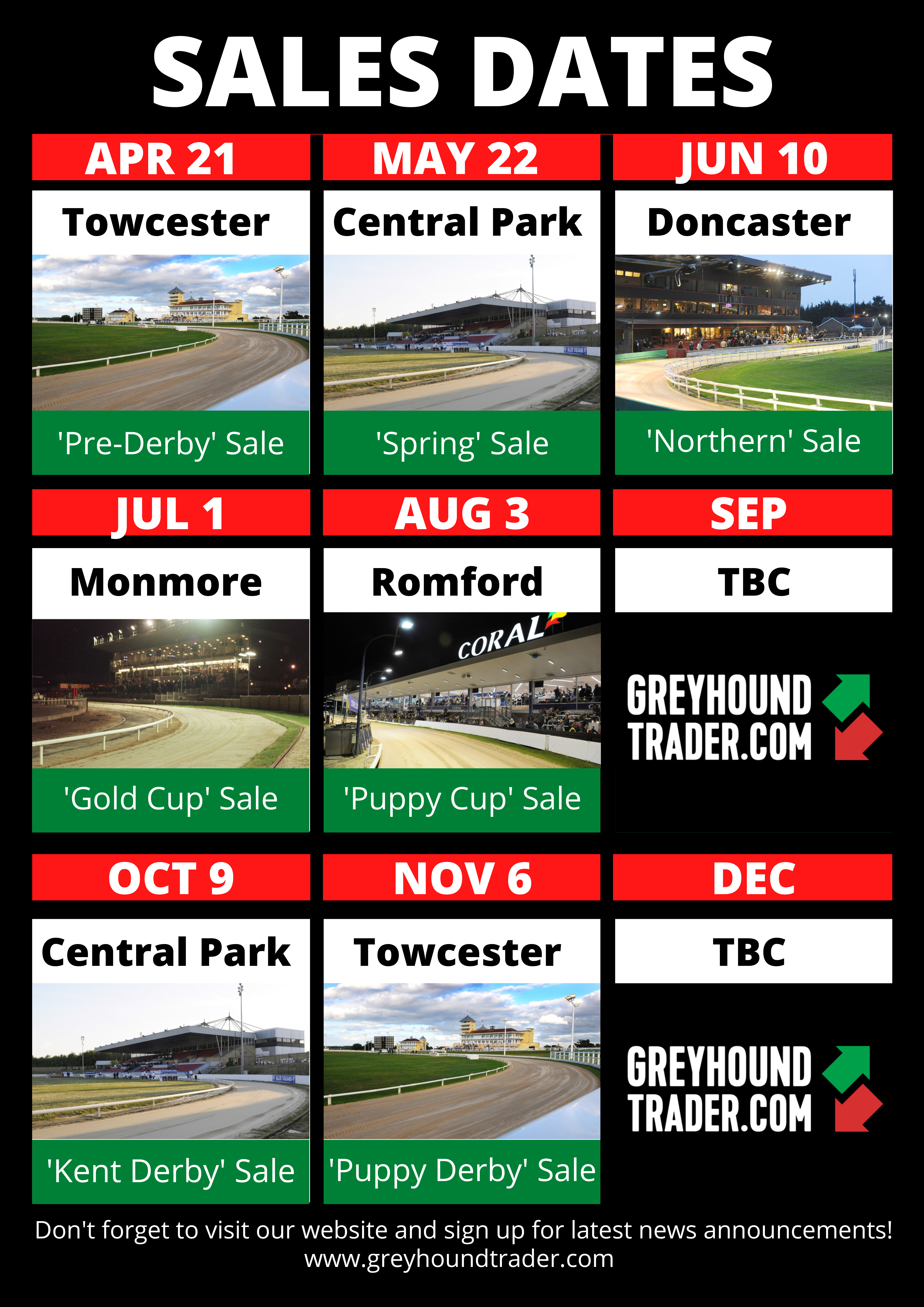 James Corden said “We are currently in discussions with the GBGB regarding the new Brexit rules and how everything will work, so we need to ensure we can demonstrate everything is done according to the new regulations. Obviously the first sale (Towcester, 21st April) is before the next round of government restrictions are removed so we are fully anticipating this one to be behind closed doors.