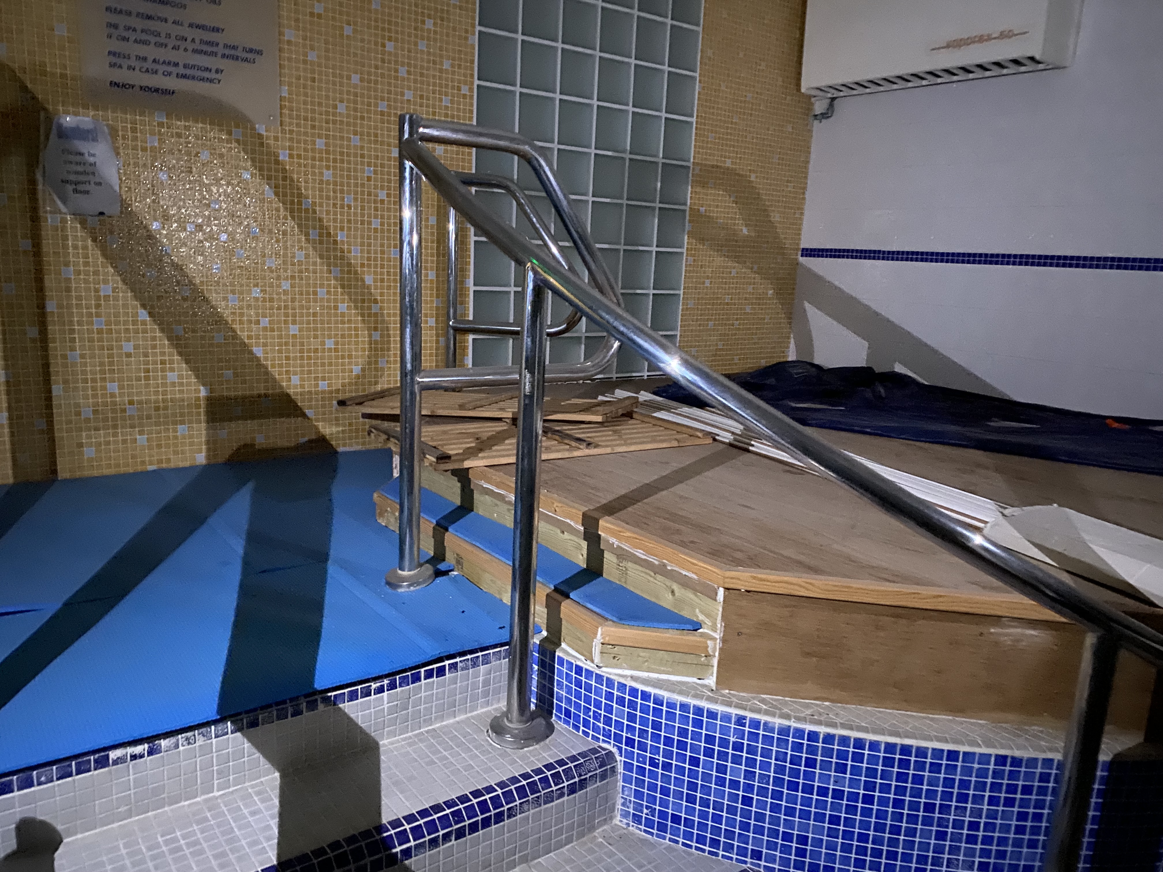 But other areas of the stadium look in remarkable condition, complete with TVs and carpets. The toilets and kitchens are in great order. Plans to re-open to the public in nine months time look quite do-able.