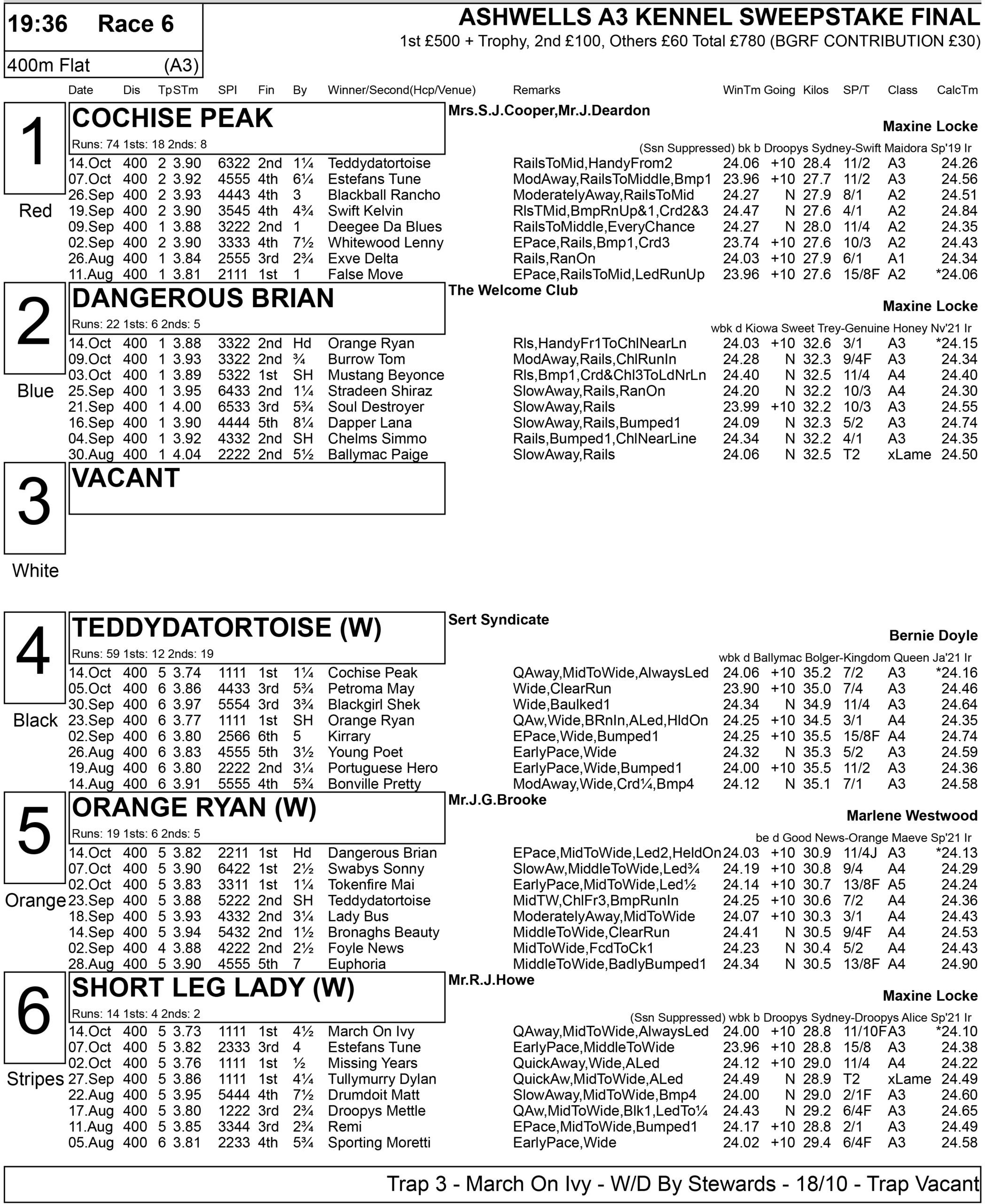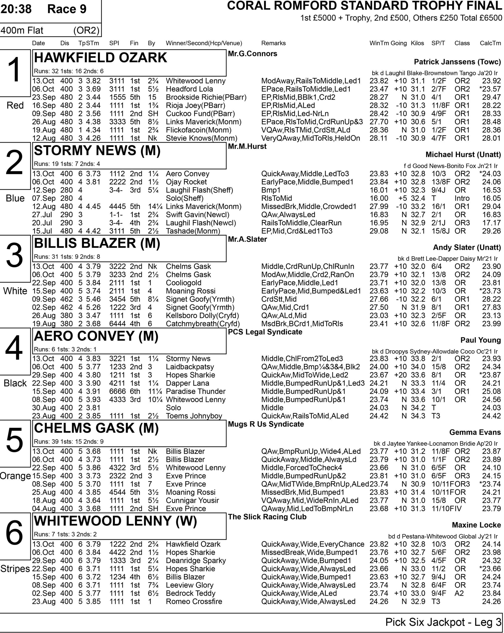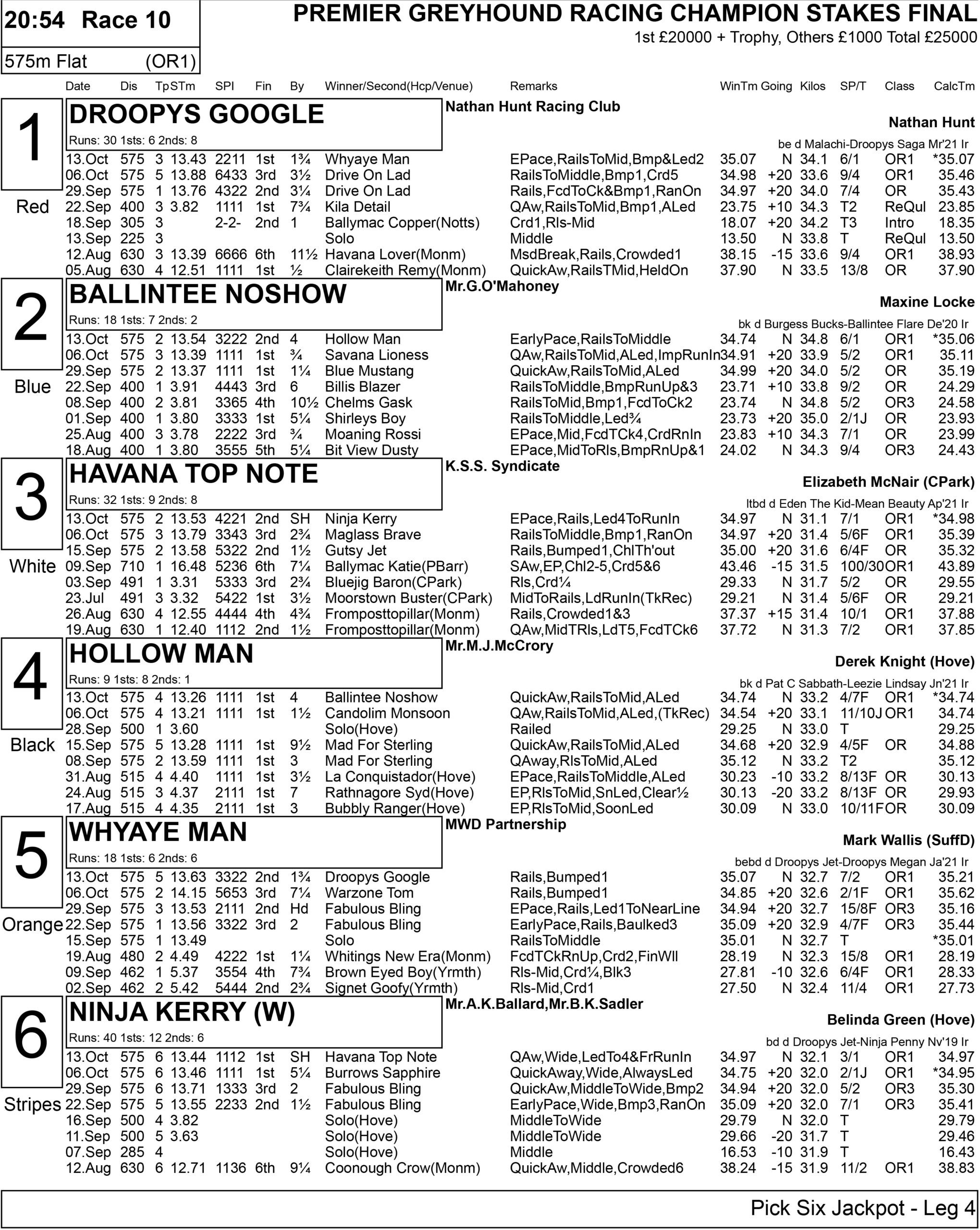 Tonight features yet another £20K decider sponsored by Premier Greyhound Racing, the Champion Stakes, with a supporting card which includes the £5K to winner Coral Standard Trophy.