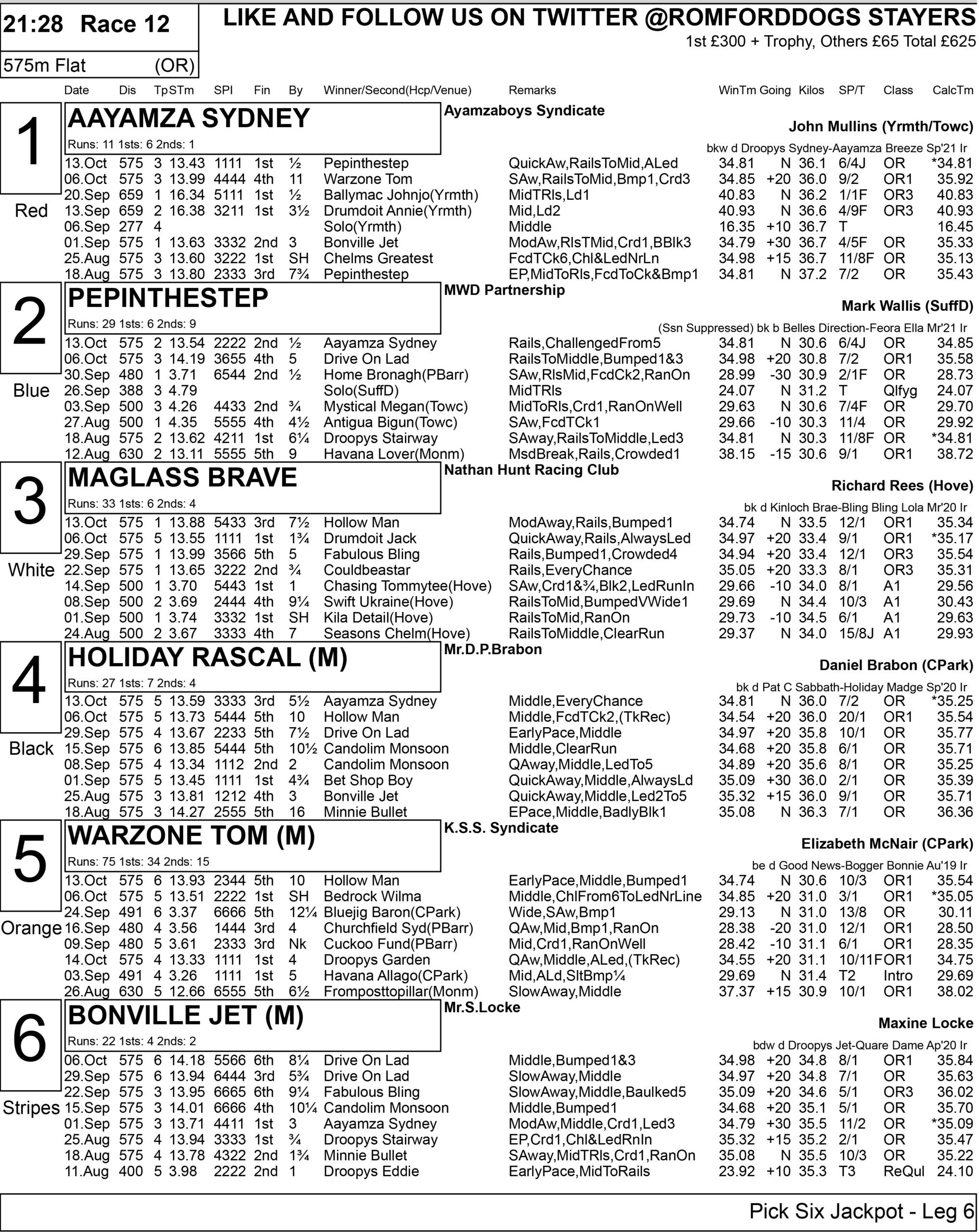 Meanwhile, there has been plenty of interest created in a tipping contest featuring tonight’s racing. We seek the King Of Romford . . .